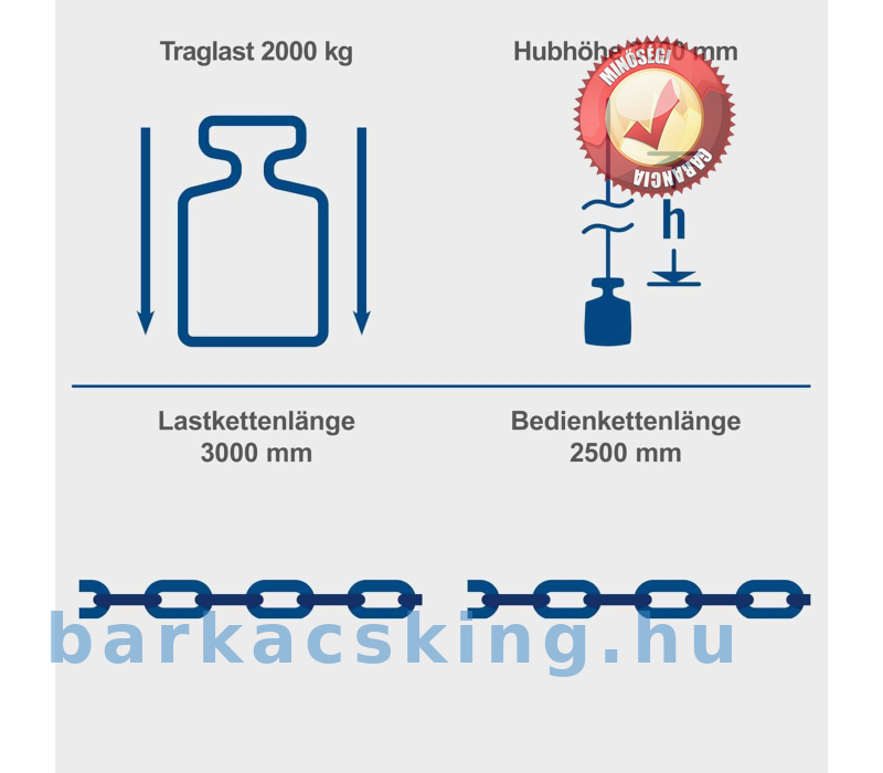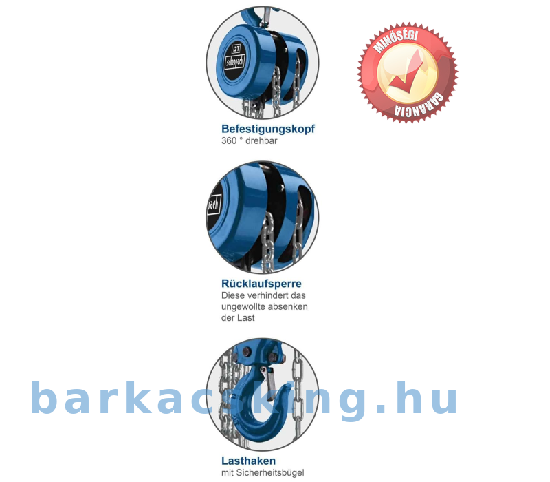 A Scheppach CB 02 kézi működtetésű, nagy teherbírású, láncos csörlő akár két tonna anyag emelésére és mozgatására is.