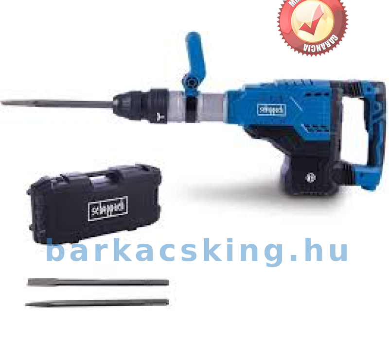 A Scheppach AB2000 bontókalapács 60 joule ütőerővel, 2000 ütés/perc ütési sebességgel és erőteljes 1700 wattos motorral alkalmas igényes bontási munkákra vagy áttörésekre betonban, kőben vagy falazatban. Az SDS-Max tartó lehetővé teszi az egyszerű, szerszám nélküli tartozékcserét. A véső 12 különböző pozícióban rögzíthető és így az adott alkalmazáshoz optimálisan beállítható. A bontókalapács kerekes szállítóládában, valamint hegyes és lapos vésővel kerül kiszállításra. • Erőteljes bontókalapács 60 J ütőerővel és 2000 ütés/percsel