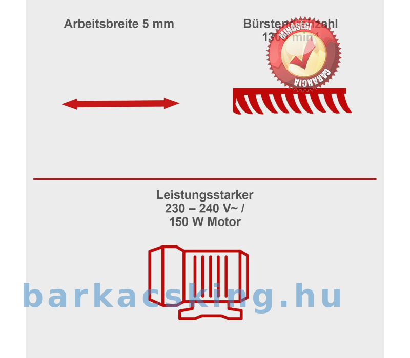 Elektromos fugatisztító- gyomirtó kefe JCL150 scheppach 150 W teljesítmény, 5 mm-es kefe szélesség, kefe átmérője 110 mm, kefe sebessége 1300 perc-1, drótkefével és nejlonkefével együtt