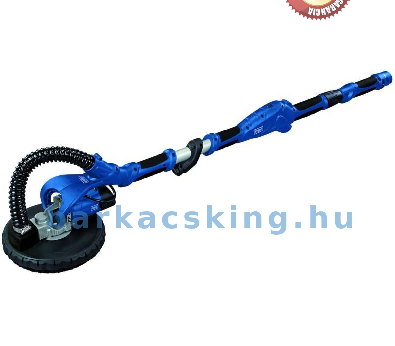 A gipszkarton falak vagy polisztirol (hungarocell) táblák csiszolása, festés vagy lakkozás előtti felület előkészítése, és más, nagyobb területeken végzendő hasonló munkák általában hosszadalmasak és fárasztóak. A Scheppach DS 920 hosszú szárú csiszolójának (úgynevezett zsiráfnak) és nagy csiszolófelületének köszönhetően, ezt a feladatot sokkal hamarabb el lehet végezni. Mivel a különböző anyagokat különböző sebességgel kell csiszolni, a csiszológép sebességszabályozóval van felszerelve. A csiszoló tartozéka egy hosszabbítható teleszkópos kar, amelynek segítségével akár 170 cm-ig meghosszabbítható a gép hossza, így könnyeben elérhető pld. a mennyezet és a nehezebben hozzáférhető helyek is. A tépőzáras csiszolópapír könnyen és gyorsan kicserélhető. Az ergonomikusan kialakított csiszológép és a puha, csúszásgátló markolat kényelmes munkavégzést biztosít hosszú időn keresztül. A csiszológép többféle tartozékból áll, úgymint, 6 darab különböző szemcsével rendelkező csiszolópapír, 4 m hosszú elszívó tömlő és 2 darab szűkítő a különböző porszívók csatlakozásához. A porelszívás lehetőségével jelentősen csökkenthető a csiszolás során keletkezet pormennyiség. A gép könnyen szétszedhető három részre, így kevés helyet foglal el, és könnyen szállítható, akár a gépkocsi csomagtartójában is.