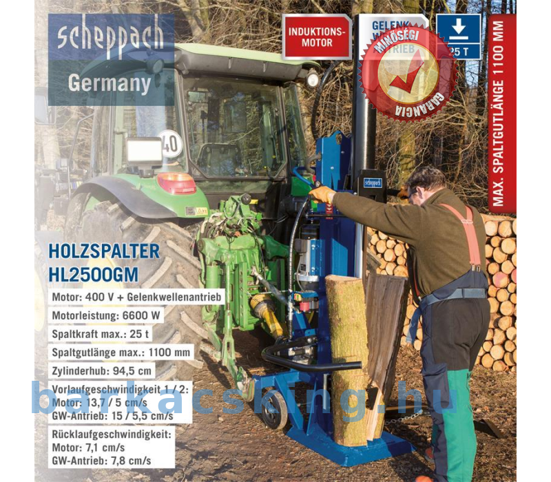A Scheppach hasítók a megfelelő társak az erdei munkához. A tűzifát 1100 mm-ig hasíthatja könnyedén, gyorsan és biztonságosan a két menetsebességgel. A hatalmas hasítóerőt elektromos motor vagy traktor generálja. A szokásos rönkemelő segít nehéz és nagy rönkök felemelésében.