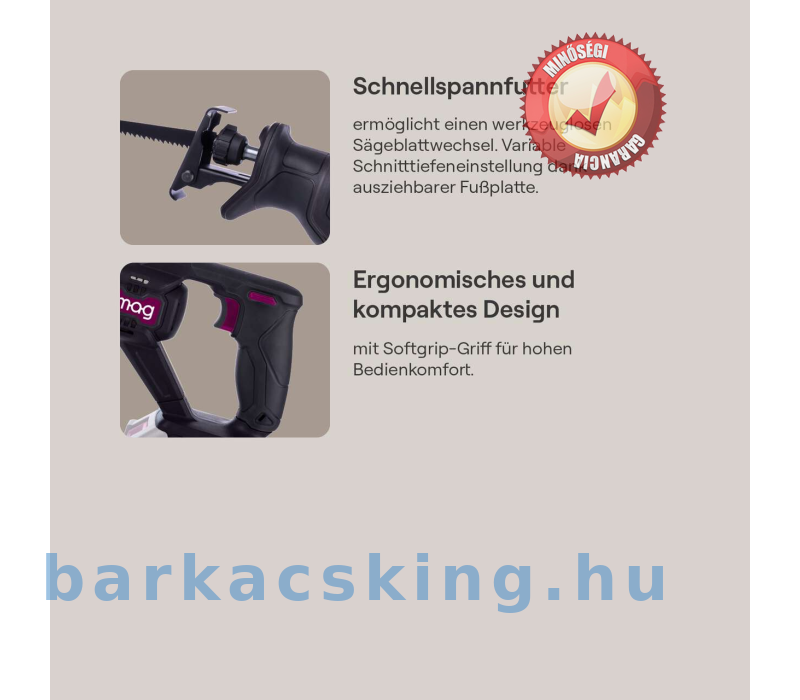 GO-SBL100 akkus orrfűrészünkkel precíz vágásokat végezhet fában, műanyagban, színesfémben vagy építőanyagokban. A szerszám nélküli, gyorsfűrészlapcsere és a folyamatosan állítható löketszám maximális biztosítása. Az ergonomikus kialakításnak, a puha markolatú fogantyúnak a LED-es munkalámpáknak és a munka élvezet lesz. A csomag tartalmaz egy fűrészlapot fához és egy imbuszkulcsot