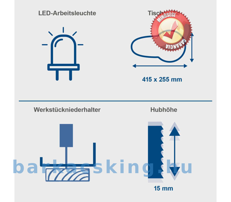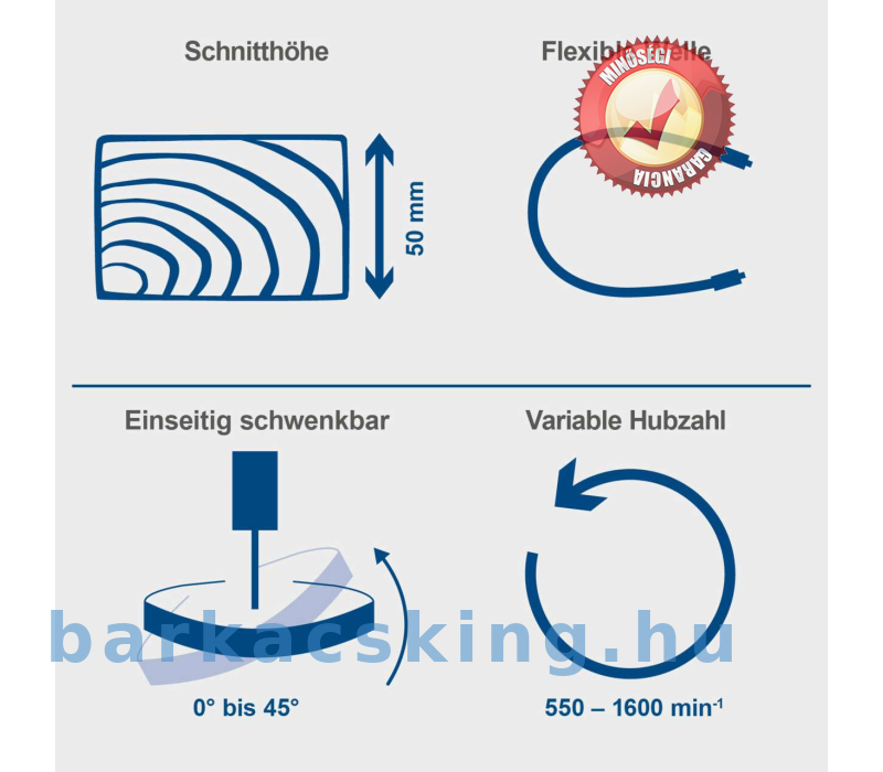 - Változtatható löketszám 550 – 1600 min -1 és 15 mm-es löketmagasság