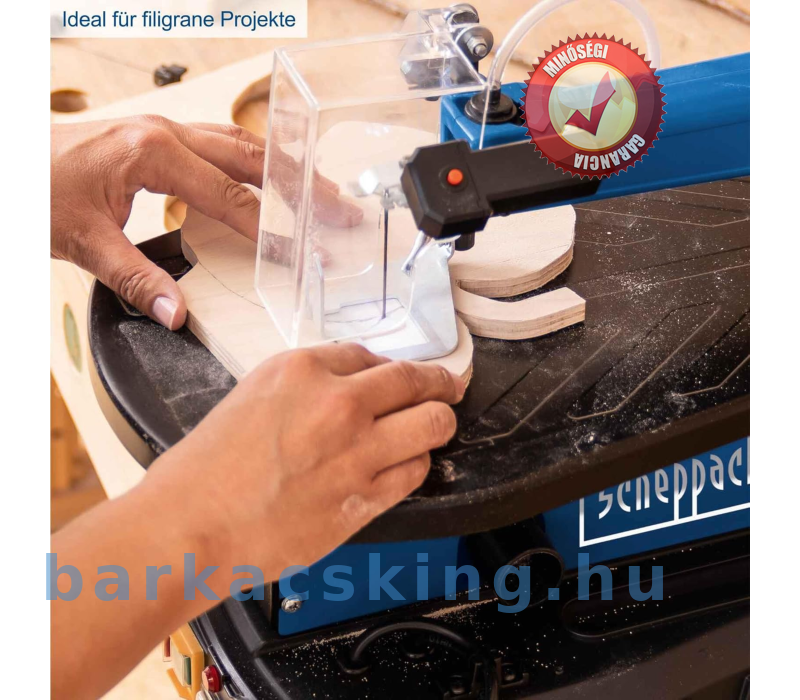A scheppach DECO-FLEX görgős körfűrész tökéletes választás milliméterpontos fa kivágásokhoz, finom kontúrokhoz és tiszta kidolgozáshoz a legnagyobb pontosság érdekében. A vékony fűrészlap precízen mozgatható akár 50 mm magas munkadarabokon is. Manőverezhetőségének még finom és lekerekített formák is elérhetők. 1600 fordulat/perc sebességével a DECO-FLEX a görgős körfűrészek kínálatának csúcsát képviseli, és összehasonlítva más modellekkel gyorsabban működik.