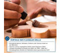 Ez több, mint egy egyszerű görgős körfűrész, mivel a DECO-FLEX egy további flexibilis tengellyel és fúrótokmánnyal rendelkezik, hogy professzionálisan megmunkálhassa a saját vágott darabjait. Az 1650-4800 fordulat/perc sebességgel és a megfelelő tartozékkal simítja a vágott éleket, eltávolítja a sorjákat és polírozza a felületeket. Még gravírozás is lehetséges további szerszámvásárlása nélkül.