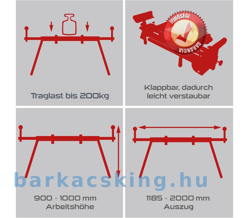 - Maximális teherbírás 200 kg | Összecsukható munkadarab tálca a kényelmes munkavégzéshez
