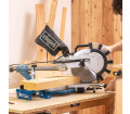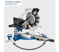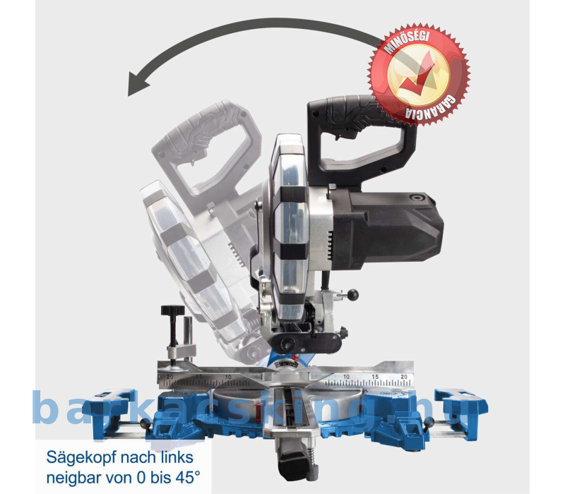 A 2200 wattos motor maximálisan 4800/perc fordulatszámmal elegendő teljesítményt biztosít kemény- és puhafa, valamint a közönséges műanyagok megmunkálásához. A stabil dupla oszlopos vezetésnek a fűrészlap pontosan vezethető a munkadarabon keresztül. A széles fogantyú és a teljesen zárt fűrészlap-védő maximális biztonságot nyújt a húzó- és gérvágó fűrész felhasználójának.