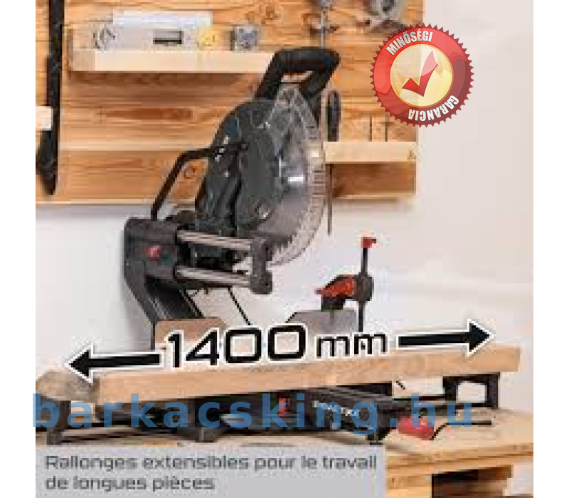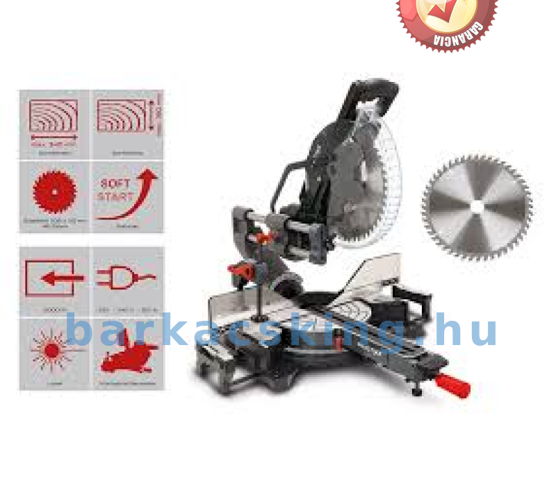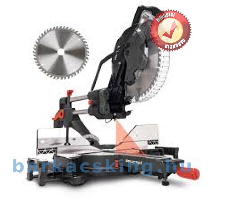 A PX-KZS-305PA Gérvágófűrész akár 340 mm széles munkadarabok fűrészelésére is használható. Erről egy 2000 wattos motor és az extra nagy, 305 mm-es, 48 fokos fűrészlap gondoskodik. Az integrált lágyindítás lehetővé teszi a fűrészlap lassú indulását.A hosszú munkadarabok ügyes elhelyezése érdekében az asztal mindkét oldalon meghosszabbítható, összesen kb. 1040 mm-re. A munkadarab optimális pozicionálása és rögzítése érdekében magas munkadarabütközőt és gyorsszorító rögzítőeszközt használnak.A forgótányér -50 és +50° közötti szabad elfordulási tartományban van a különféle ferde vágásokhoz és gérszögekhez. A közös szögek gyorsan és egyszerűen rögzíthetők több rögzítési pont segítségével. A fűrészlap mindkét oldalra 48°-ig dönthető.A széles fogantyú és teljesen zárt fűrészlap-védelem maximális biztonságot nyújt a húzó- és gérfűrész használója számára fűrészelés közben. Az lézer pontosan mutatja a vágóélt, hogy precíz vágást tesz integrált fában és műanyagban egyaránt.A PX-KZS-305PA különlegessége a harsonahosszabbítás. A hagyományos keresztvágó fűrészekkel ellátott PX-KZS-305PA nem igényel helyet a gép mögött a fűrészfej mozgatásához, mivel a vezetősí rögzítettek. Ez azt jelenti, hogy nagyobb vágási szélesség lehetséges, mint egy tiszta szecskázófűrésszel, és a gép továbbra is a falra helyezhető. Ez tökéletes műhelyekhez olyan munkafelületekhez van szükség, amelyeknek nincs megfelelő mélysége.A 305 mm-es fűrészlap speciális rögzítésének akár 180 mm-es vágási magasság-növelés is lehetséges. Emiatt a Practixx új vágó-, húzó- és gérvágó fűrésze tökéletes kiegészítője minden olyan műhelynek, amely szeret nagyobb projektekkel foglalkozni. Műszaki adatok: