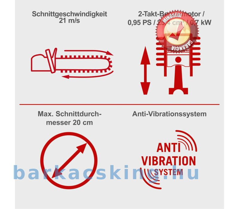 - Erőteljes 0,95 LE / 0,7 kW kétütemű benzinmotor 25,4 cm3-rel
