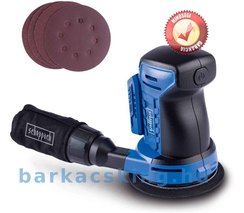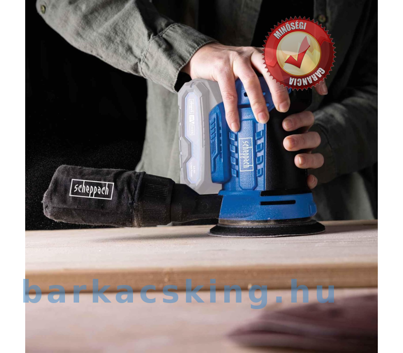 Scheppach akkus excentercsiszoló C-OBS125-X 20V-os csiszológép lágyindítással | Csiszolókorong átmérője 125 mm | Oszcilláló kör 2 mm | Puha markolatú fogantyú és porelszívás | 20 V IXES Akkumlátorral-töltővel!