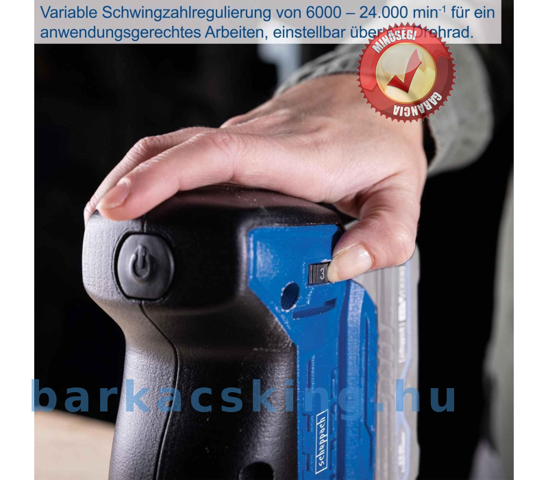 Változtatható vibrációs fordulatszámszabályozás 6000 - 24 000 percenkénti fordulatszám között az alkalmazásnak megfelelő munkavégzéshez, forgókerékkel állítható