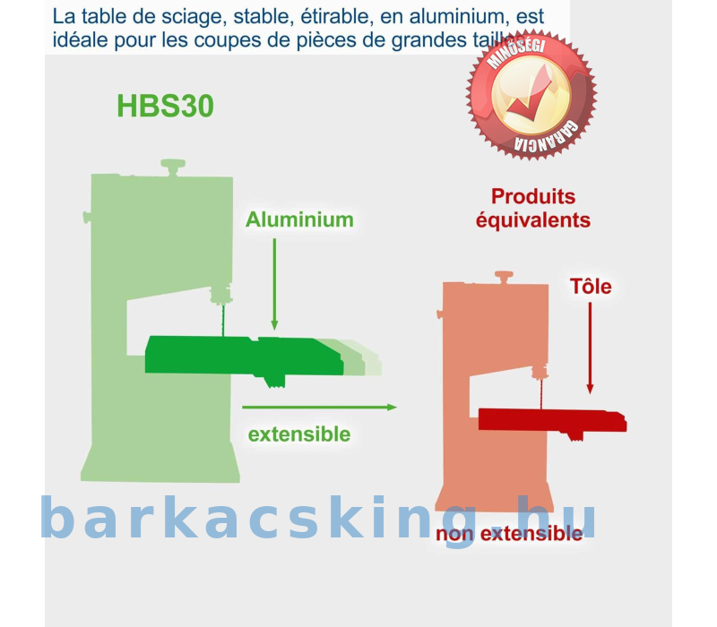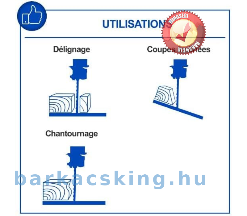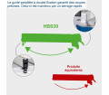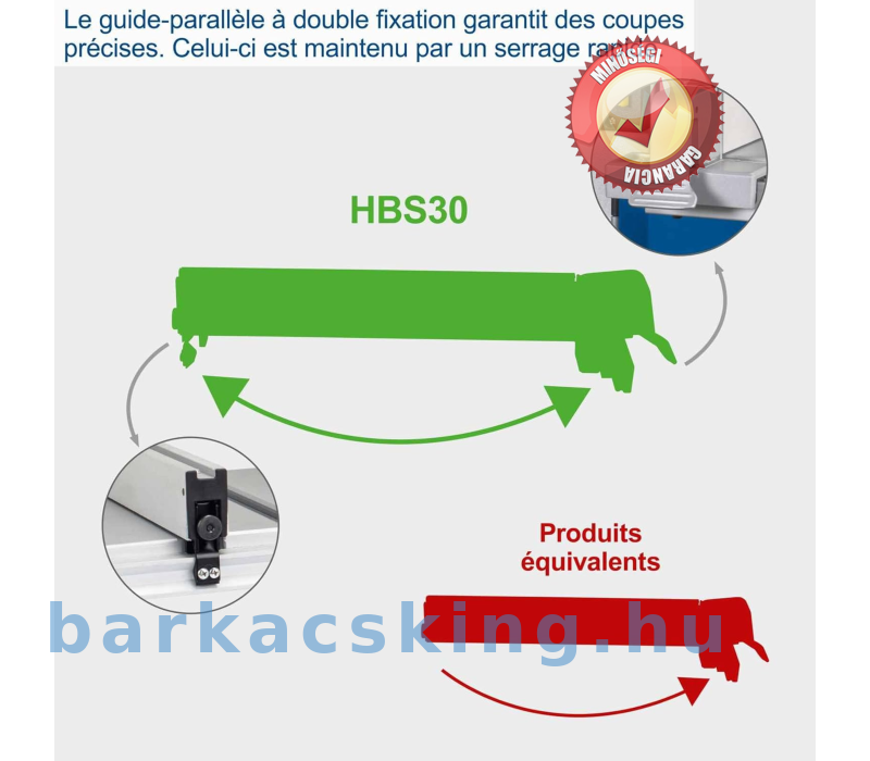 A párhuzamvezetők nem engedik a fűrészszalag elmozdulását, így ezen az alaptípuson is nagyon pontos vágásokat lehet elvégezni.