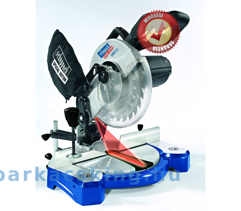 Scheppach HM 80 L gérvágófűrész puha és kemény fafajták és műanyag profilok vágására. Kényelmes és pontos munka, felszerelt lézer és a penge biztosított.