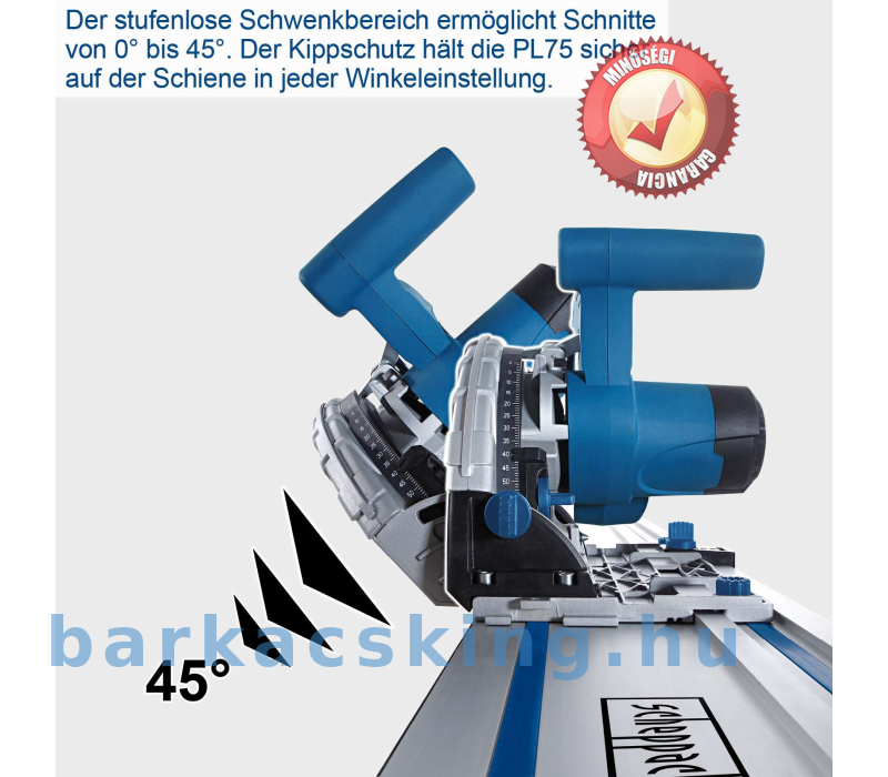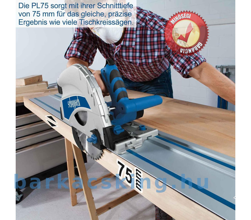 A merülőfűrész a megfelelő választás, ha a pontosság és a pontosság mindig a legfontosabb. Ebben felülmúlja minden körfűrészt. a merülőfűrészek merülő funkciójával is rendelkezik, amely lehetővé teszi a fűrészlap leengedését a munkadarab minden pontján. A fűrészelési folyamat így bármelyik pozícióból indítható. Ez nagyon praktikus a mosogatók és főzőlapok munkalapjainak kivágásainál. Akár amatőr, akár profi, a felhasználó a legnagyobb pontos éri el pontos, szálkásodásmentes vágások irányát. A PL75 további erőssége, hogy akár 16 mm-es árnyékhézagokat is képes vágni. A padló lerakása után egyszerűen vezesse végig a merülőfűrészt a szélén, így nincs szükség a parketta vagy laminált padló milliméterpontos lerakására. A kipattogzásgátlónak ez furnéros fa mennyei panelek esetén is gyors és biztonságos. A fokozatmentes elforgatási tartomány 0° és 45° közötti vágásokat tesz lehetővé. 45°-os szögben maximális vágási mélység 55 mm. A 210 mm-es, 36 fogú fűrészlap keményfához, forgácslaphoz, rétegelt lemezhez, MDF-hez és kétoldalasan bevont panelekhez alkalmas. Az integrált kipattogzásgátló biztosítja a kipattogzásmentes éleket. 75 mm-es vágási mélységének megfelelő merülőfűrész sokféle anyag vágására alkalmas. A vágási magasságjelző precíz vágást tesz lehetővé. A forgácslap-védő különösen hatékony a 38 mm-es elnyíláson keresztül a fűrészlap-védőnek.