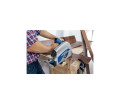 A fűrész képes 16mm-es faltávolságtól vágni, lehetséges vele a 75 mm-es anyagvastagság átvágása és pontos kivágásokat képes elvégezni a deszka/lap közepén is.