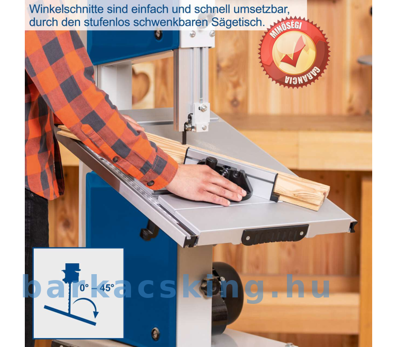 - Munkaasztal szögletes skálával, amely folyamatosan 0° és 45° között forgatható a ferde szögek beállításához