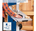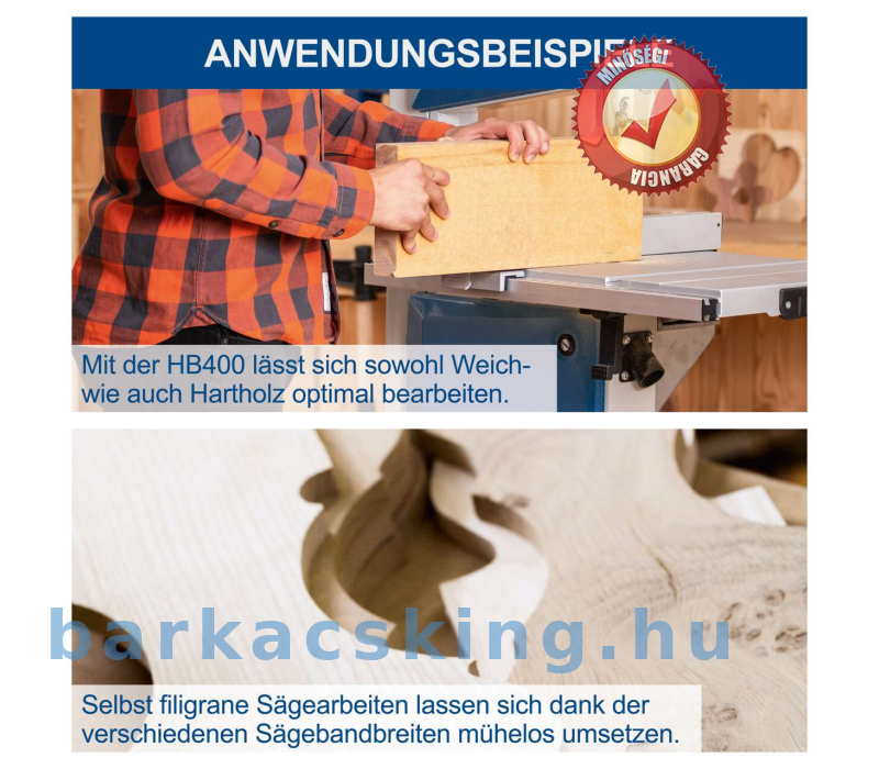 A scheppach HBS400 egy nagyméretű szalagfűrész otthoni műhelybe, kemény és puha fák, pl. A maximum 170 mm magas gerendákat vagy műanyagokat precízen kell megmunkálni. A HBS400 abszolút egyenes vágásokhoz és gyönyörű ívekhez alkalmas, melyekhez a munkadarabot fűrészelés közben a munkaasztalon mozgatják. Emiatt a szalagfűrész sokkal finomabb, mint egy körfűrész, de a görgős fűrés nem alkalmas finom munkákhoz és belső kivágásokhoz.