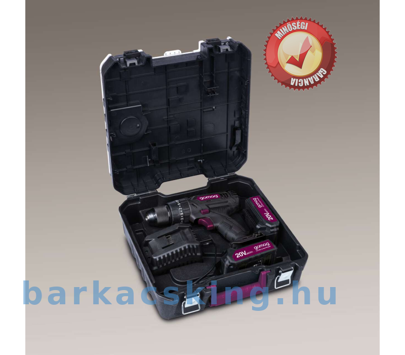 Akkus ütvefúró 20 V 2db aksival töltővel!74 darabos tartozékokkal, koffer, CSK74 2 sebességes akkus csavarozó, ütvefúró funkció, 50 Nm, 1,5-13 mm-es fúrótokmány, LED lámpa, 2 x 2 Ah