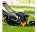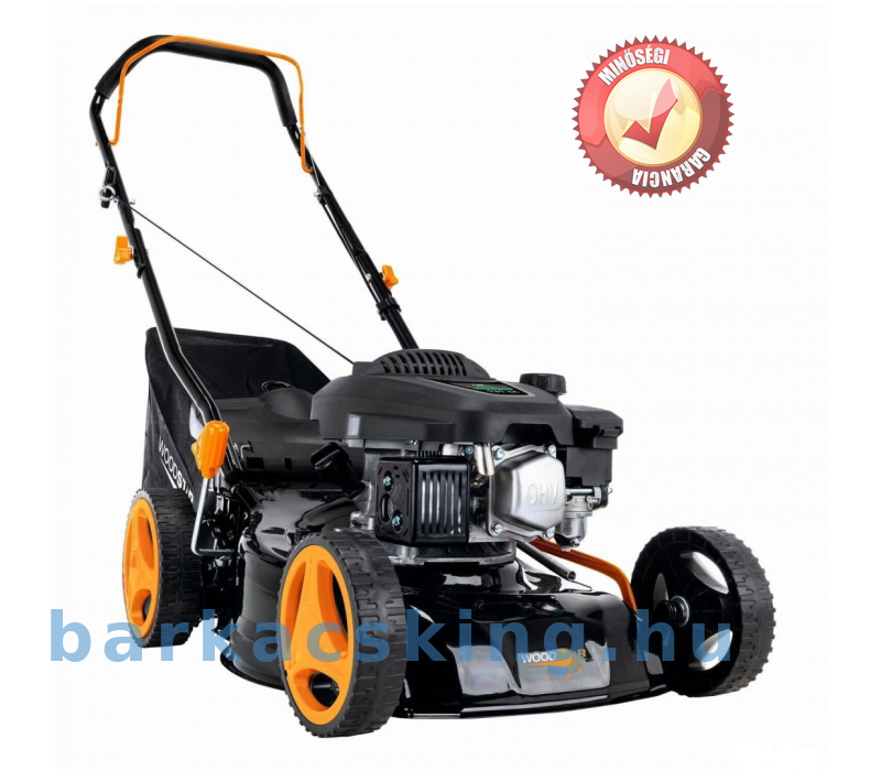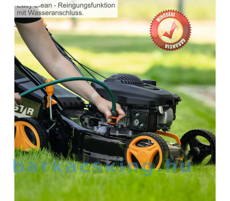 A TT132-42 Woodster benzinmotoros fűnyíró az ideális partner a gondozott kertben. 42 cm-es vágási szélességével és 25 és 75 mm között 7 fokozatban állítható központi vágási magassággal rugalmasan alkalmazkodik az Ön igényeihez. A nagy teljesítményű, 3,3 lóerős, 4 ütemű motor megbízható teljesítményt biztosít, míg a húzós indítószerkezet telepítési az indítást. A fűnyíró praktikus, 45 literes fűgyűjtővel rendelkezik, amely hatékonnyá teszi a fűnyírást és a gyűjtést. A porszórt acélszerkezetnek robusztus és tartós. Kerékhajtás nélkül is könnyű és manőverezhető marad, így tökéletes akár 800 m²-es területekre. Az összecsukható fogantyú általi tárolást, míg az Easy Clean rendszer leegyszerűsíti a tisztítást. Fekete és narancssárga színben kapható, ez a fűnyíró igazi szemet gyönyörködtető lehet a kertben