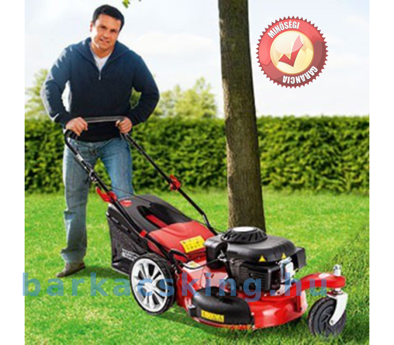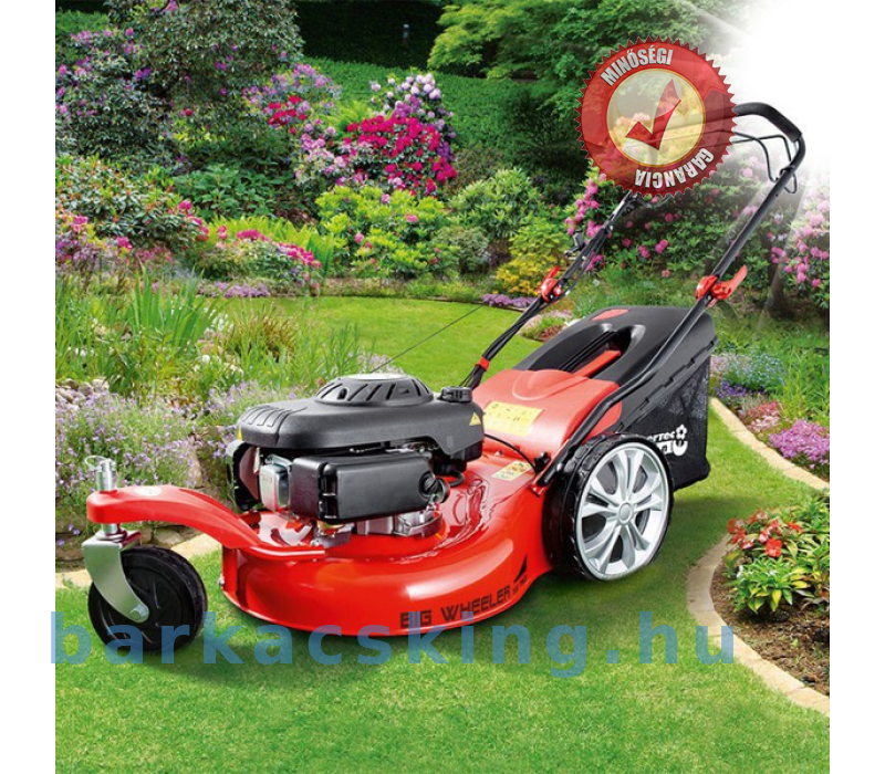 Önjáró, három kerekű fűnyíró gazdaságos, nagy nyomatékú négyütemű motorral.