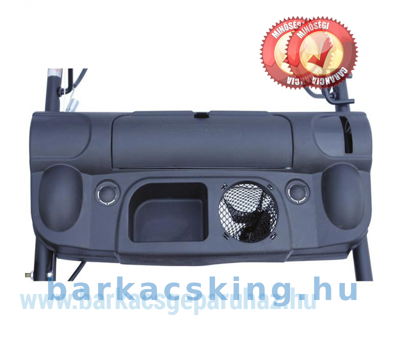 Ergonomikus, állítható magasságú kormányoszlop, 6-szoros központi állítású vágásmagasság. 65 literes fűgyűjtő szintjelzéssel, golyós csapágyas kerekek. Hátsókerék hajtás.