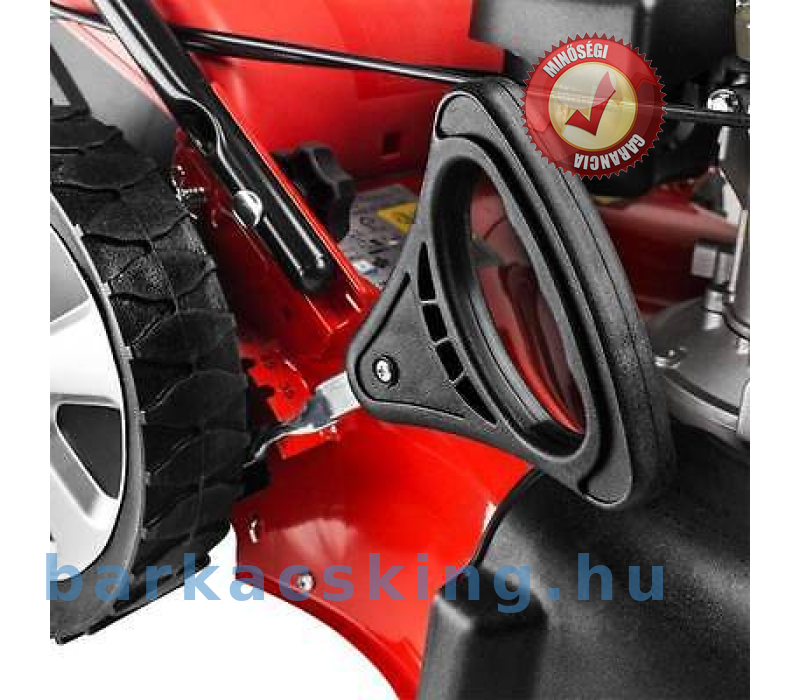 Ergonomikus, állítható magasságú kormányoszlop, 6-szoros központi állítású vágásmagasság. 65 literes fűgyűjtő szintjelzéssel, golyós csapágyas  kerekek. Hátsókerék hajtás.