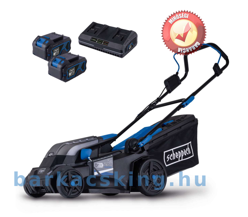 A 38 cm-es vágásszélességű Scheppach akkus fűnyíró BC-MP380-X 450-500 m2 gyepterületű kertekhez alkalmas. A központi vágási magasság állítás 6 fokozatban 25 és 75 mm között, valamint a gyep szélének előtolása mindkét oldalon optimális eredményt biztosít. A BC-MP380-X erős kefe nélküli motorral működik. Ez a kefe nélküli motor különösen nagy hatékonyságot, hosszabb üzemidőt, hosszú élettartamot és kisebb kopást biztosít. A Scheppach IXES 20 voltos sorozat részeként a rendszersorozat összes akkumulátora és töltőkészüléke kombinálható a fűnyíróval. A BC-MP380-X mulcsozó betéttel együtt kerül szállításra.