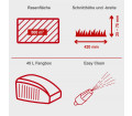 42 cm vágási szélesség, max. 75 mm vágási magasság, 131 cm³ motor lökettérfogat