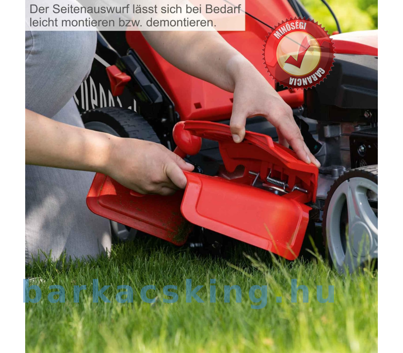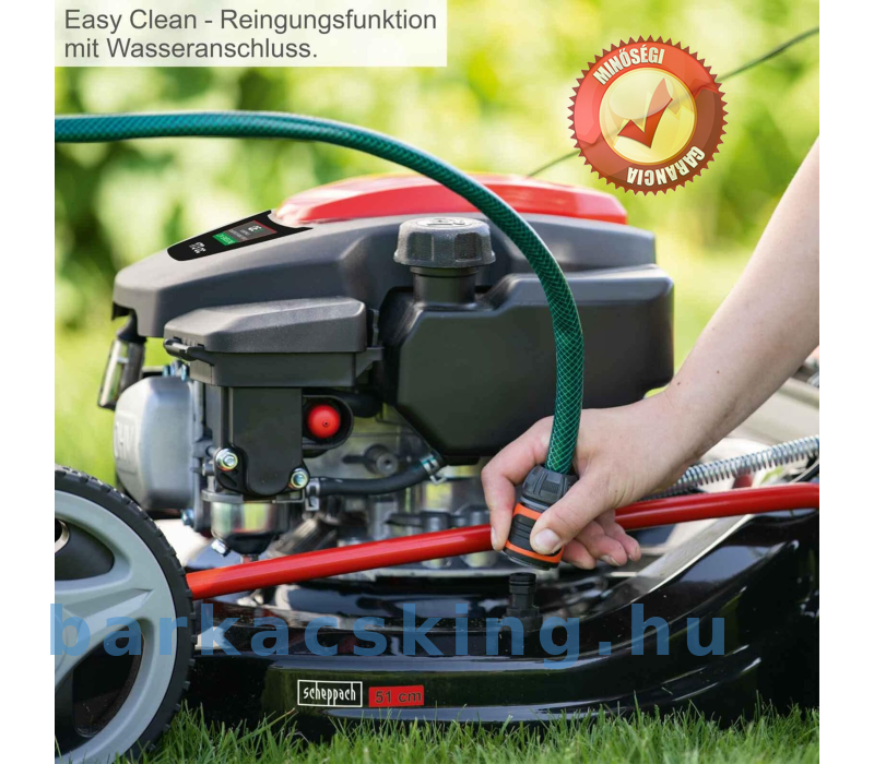 tolózóeresztő: Igen Mulcsos Oldalsó deflektor : Igen Súly és méretek Súly: 33 Kg A Scheppach MS 173-51 fűnyíró ideális választás a közepes vagy nagyobb méretű gyepekhez. Kemény munkára és hosszú élettartamra van tervezve. Ezért nem nélkülözi a praktikus és kényelmi megoldásokat sem. Alapja a nagy, 51 cm-es munkaszélesség és az erős 173 cm3-es, ami akár a magas, nedvesebb fűvel vagy erősebb, gazosabb növényzettel is megbirkózik. A füvet többféle módon képes feldolgozni. Vagy hagyományosan összegyűjti a gyűjtőkosárba, vagy, a standard tartozék mulcsozó dugó segítségével, képes mulcsozni, ami biotrágyaként szolgálhat a terepen. E mellett, természetesen oldalra, vagy hátra is ki tudja dobni a levágott füvet. A gép erős acél alvázzal, minőségi, heavy-duty GT Transmission meghajtással, a könnyebb manőverezést elősegítő, nagy kerekekkel, tágas, telítettségjelzős gyűjtőkosárral, központi vágásmagasság állítással, ergonómikus, állítható, puhított markolatú tolószárral és a vágótér könnyű tisztítása lehetővé tevő fúvóval. A tárolásnál és a szállításnál nagy segítséget jelent az összecsukható tolószár. Az 51 cm-es vágószélesség kb. akár 1500 m2/ óra munkateljesítményt tesz lehetővé.