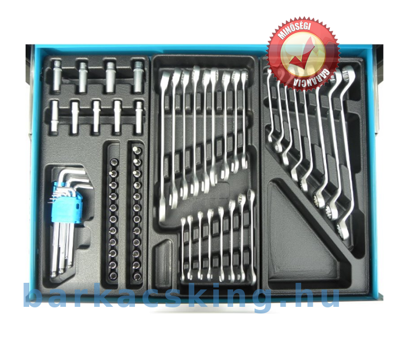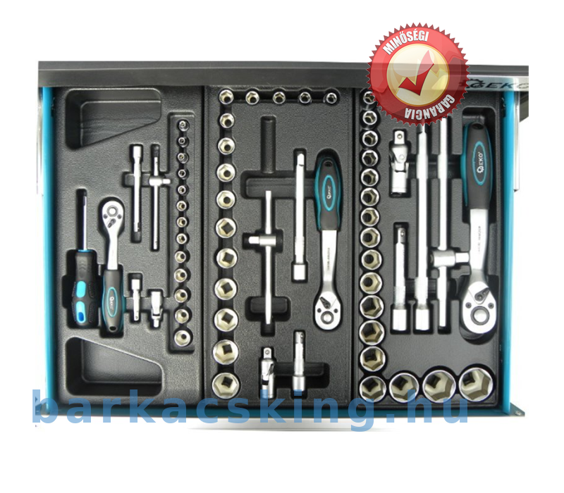 Teljesen felszerszámozott, 272db-os szerszámkészletből álló, 7 fiókos szerszámkocsi, görgős és zárható fiókokkal, szerszámoknak kialakított tálcákkal. Teteje szerelőasztalként is használható, műanyaggal borítva, alkatrésztároló rekeszekkel. Az alsó két nagy fiók tovább tölthető igény szerint bármilyen szerszámokkal! A szerszámok és a kocsi minőségi kivitel, kisebb műhelyekbe, karbantartáshoz, otthoni autószereléshez, egyéb szerelési munkákhoz kiváló.