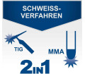 Kombinált készülék AWI és MMA hegesztéshez, alkalmas acélhoz és rozsdamentes acélhoz