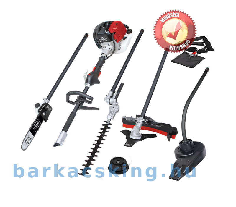 A scheppach 5 az 1-ben többfunkciós készülék fűnyíróból bozótvágóvá, sövénynyíróvá, rúdmetszővé vagy lombfúvóvá alakítható egyetlen mozdulattal – ideális segítő minden kerti munkához.