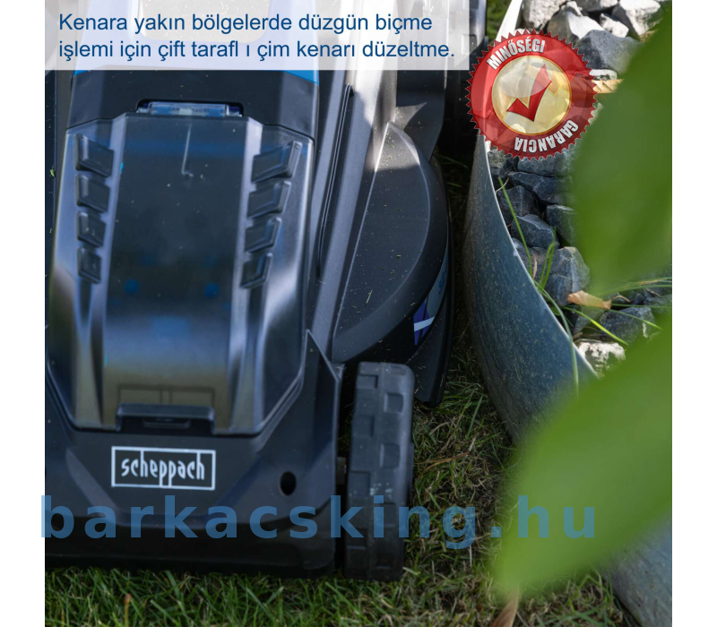 A 32 cm-es vágásszélességgel a Scheppach BC-MP320-X akkumulátoros fűnyíró ideális kisebb lakóegységekhez, sorházakhoz és kisebb, 250-300 m2-es pázsitú kertekhez. Az axiális vágási magasságállítás 3 fokozatban 20-60 mm között, és a gyep szélének mindkét oldalán található bemenet biztosítja az optimális nyírási eredményt. A BC-MP320-X erős kefe nélküli motorral működik. Ez a kefe nélküli motor különösen nagy hatékonyságot, hosszabb üzemidőt, hosszú élettartamot és kisebb kopást biztosít. A Scheppach IXES 20 voltos sorozat részeként a rendszersorozat összes akkumulátora és töltőkészüléke kombinálható a fűnyíróval.