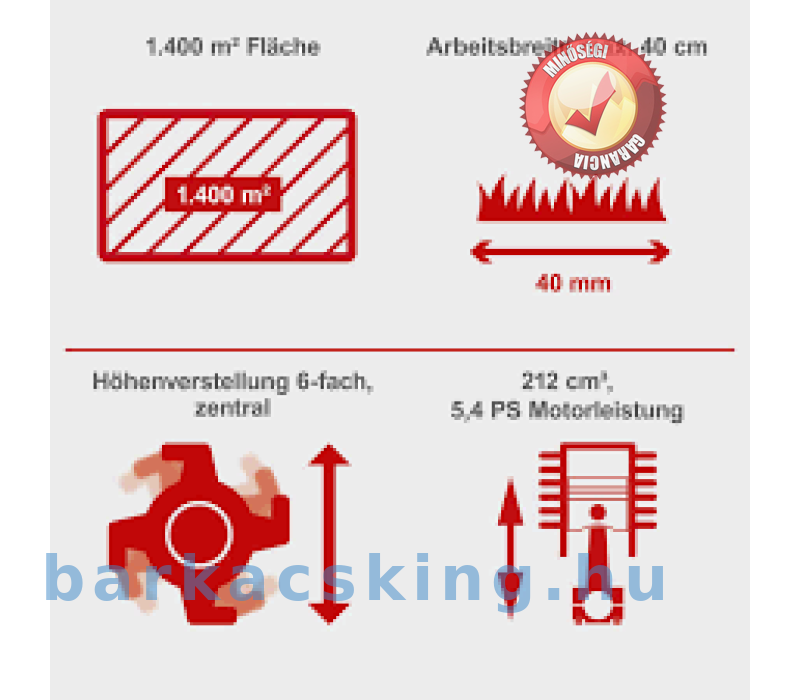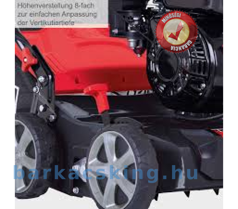 A Scheppach SC55P benzines szellőztető gyorsan és egyszerűen eltávolítja a mohát és a gyomot a gyepről. A 40 cm-es munkaszélességgel és a nagy teljesítményű, 5,4 LE / 4 kW-os, 212 cm3-es négyütemű benzinmotorral a nyírógép 1400 m2-es pázsitig használható. A munkamagasság ideálisan igazítható az adott padlóigényekhez a központi magasságállítással, 6 fokozatban -15 és +5 mm között. A Scheppach SC55P-t előre összeszerelt, golyóscsapágyas késgörgővel szállítjuk, 15 kiváló minőségű acél késsel. • Erőteljes, 5,4 LE / 4 kW-os 4 ütemű benzinmotor 212 cm3-rel