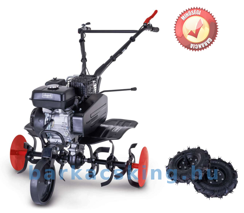 A Scheppach MTP750 benzines talajművelő praktikus eszköz aprított anyag, humuszos műtrágya vagy tőzeg bedolgozására, valamint a talajlazításra és a vetés előkészítésére. A 310 mm-es maximális munkamélység a talaj különösen mély lazítását is biztosítja.