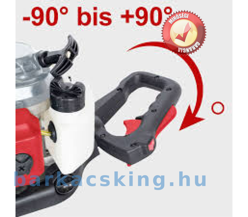 A sövényvágó nettó súlya alig haladja meg a 6 kg-ot. Két kézzel biztonságosan vezethető. A hátsó fogantyú három pozícióban 180°-ig állítható kényelmes kéz- és teszthelyzet érdekében. Az elülő C-fogantyú számos fogási lehetőséget is lehetővé tesz, így a sövénynyíró minden mozdulatnál kényelmesen ül a kézben. A beépített vibráció elleni védelem és a kiegyensúlyozott kialakítás még könnyebbé teszi a munkát.