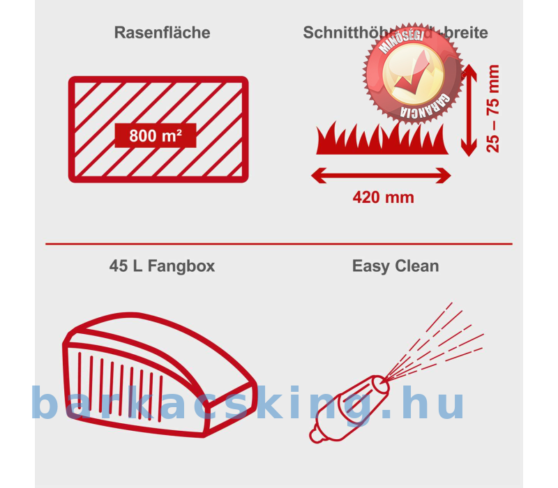 - Akár 800 m2-es kertekhez is alkalmas