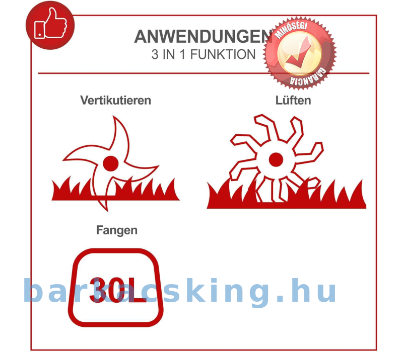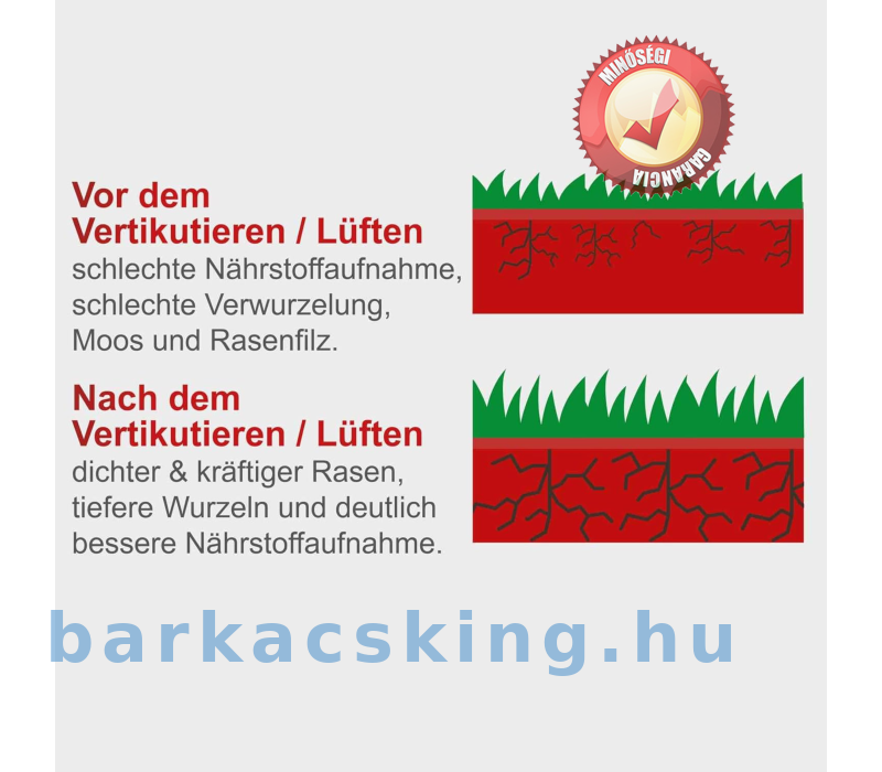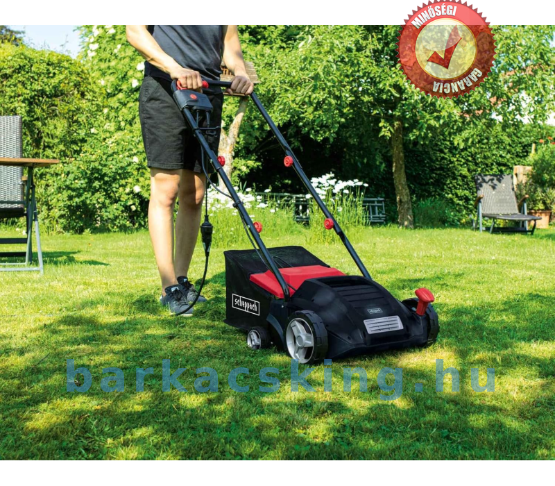Könnyű gyepápolás a Scheppach könnyen kezelhető talajlazítójával. A talajlazító henger pengéi a talajon keresztül kíméletesen dolgoznak át a gyepen, és a gyökerével együtt eltávolítják a mohát. A második tartozékkal a gyep szabályozható és szellőztethető is. A nagy, 30 literes gyűjtőkosárnak a fáradságos gyűjtés megszűnik.