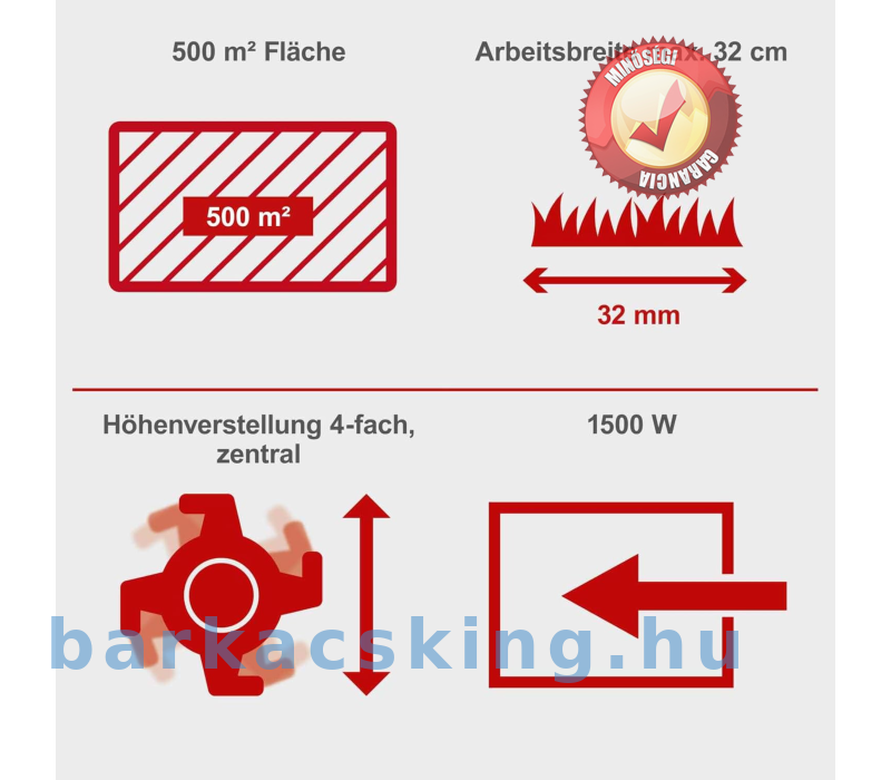 Az SC32 elektromos talajlazító ventilátor bátorsággal látja el feladatát. Erőteljes 1500 W-os motorja és 32 cm-es munkaszélessége ideális kerti segédeszközzé teszi kis és közepes méretű füves területeken lazításához és levegőztetéséhez - az egészséges gyepfelületért és az ápolt, gyommentes kertért.
