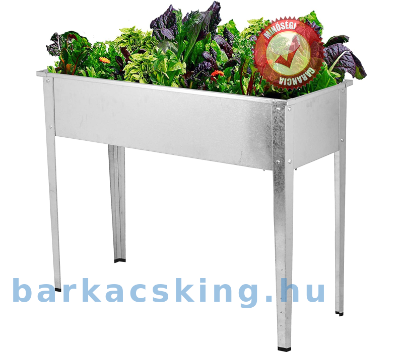 - Praktikus emelt ágy, amely horganyzott acélból készült, hátsó kertészethez