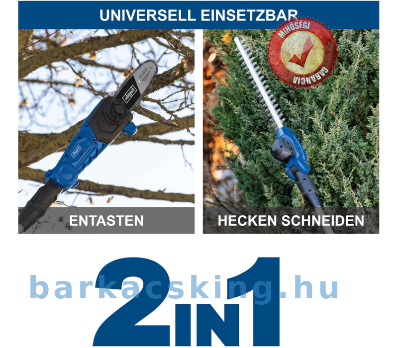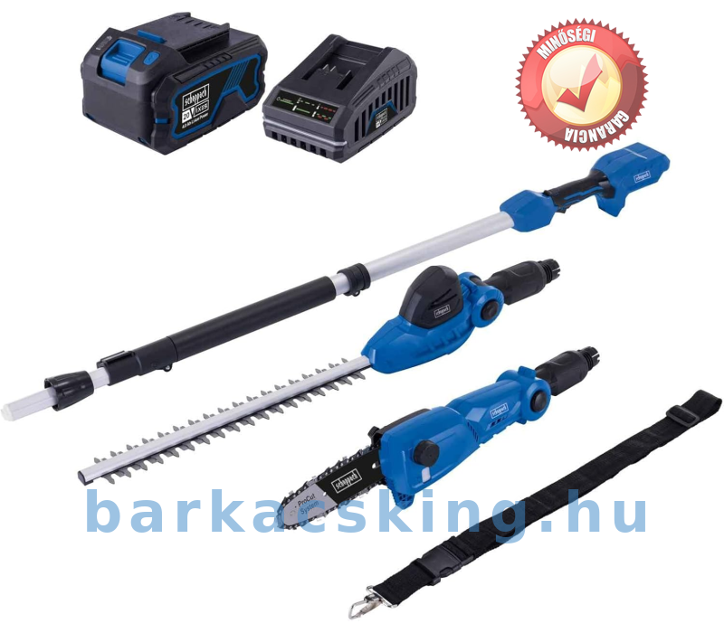 A Scheppach teleszkópos akkumulátoros sövénynyíró C-PHS410-X a Scheppach IXES 20 Volt sorozat része. Ez azt jelenti, hogy ebből a sorozatból az összes akkumulátor és töltő kombinálható egymással.