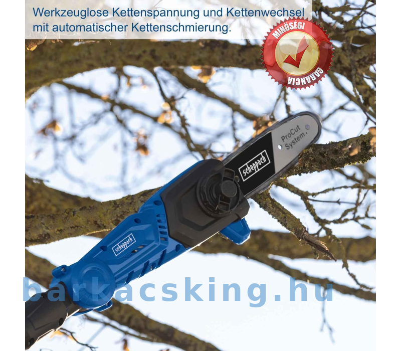 A Scheppach C-PHS410-X sövénynyíró 20 V-os akkumulátorral működik, és teleszkópos funkciójával maximum 2,6 méter ér el. A 410 mm-es vágási hossznak kiváló a magas sövények is könnyen nyírhatók a talajról. A motoros fej 11 különböző szögben rögzíthető a munkához való alkalmazkodás érdekében. A vállpánt extra tartást biztosít, és biztosítja, hogy hosszabb ideig kényelmesen dolgozhasson.