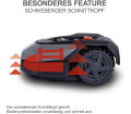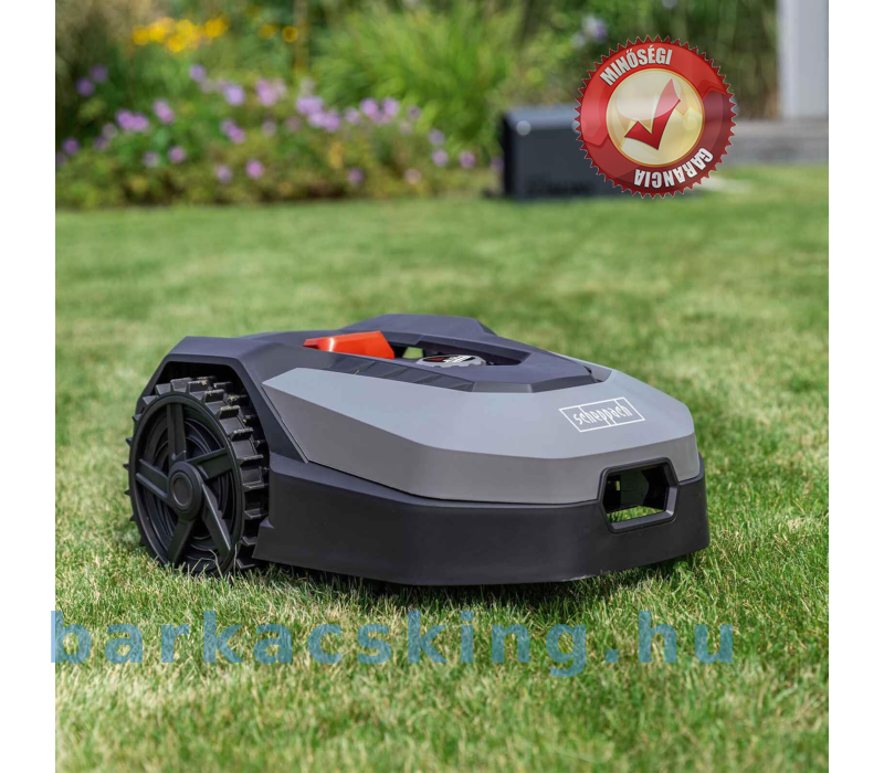 A Scheppach RoboCutXXL900 robotfűnyíró akár 900 nm-es gyepterületű kertekhez is alkalmas. A vezérlés manuálisan vagy automatikusan történik azbeállításokon keresztül, melynek segítségével beállítható többek között a napi fűnyírási idő. A gyors és egyszerű telepítés, mivel a határolókábel a föld felett is elhelyezhető. A vágási magasság egyedileg állítható 20-60 mm között. A robot a pázsit szélein is biztonságosan nyír a gyep fokozaton, így azokat nem kell külön nyírni. Akár 35%-os gradiens is lehetséges.