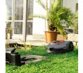 A kompakt, 18 cm-es vágásszélességű robotfűnyíró önállóan és véletlenszerűen nyírja a füvet.