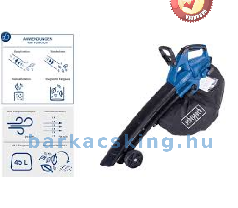 A Scheppach akkus lombszívó/fúvó BC-Blv720-X 4 az 1-ben funkcióval - erős fúvó, hatékony levélporszívó, aprító funkció és integrált gyűjtőzsák - praktikus komplett megoldás minden kertgondozási igényhez. A nagy,10 km/hs légsebességnek 720/hs3/hs légáramnak és szennyeződésnek a BC-Blv720-X könnyen eltávolítja a leveleket, a levágott füvet és egyéb ődéseket. Az integrált aprító funkciónak hatékonyan kell felaprítani őket, amikor beszívja őket, és a nagy, 45 literes gyűjtőzsákba gyűjtik. Az akkumulátoros levélporszívó/fúvó erős kefe nélküli motorral működik. Ez a kefe nélküli motor különösen nagy hatékonyságot, hosszabb üzemidőt, hosszú élettartamot és kisebb kopást biztosít. A Scheppach Ixes 20 voltos sorozat részeként a rendszersorozat összes akkumulátora és töltőkészüléke kombinálható a BC-Blv720-X készülékkel. Az akkumulátor és a töltő külön kapható.