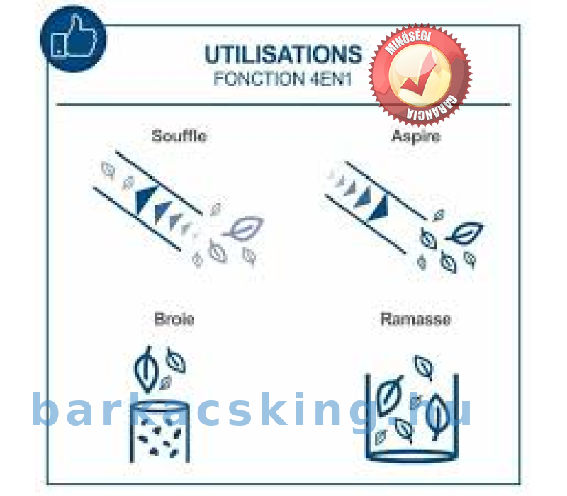 Erőteljes akkus lombfúvó 4 az 1-ben funkcióval: szívás, fúvó és aprító funkció, valamint beépített gyűjtőzsák
