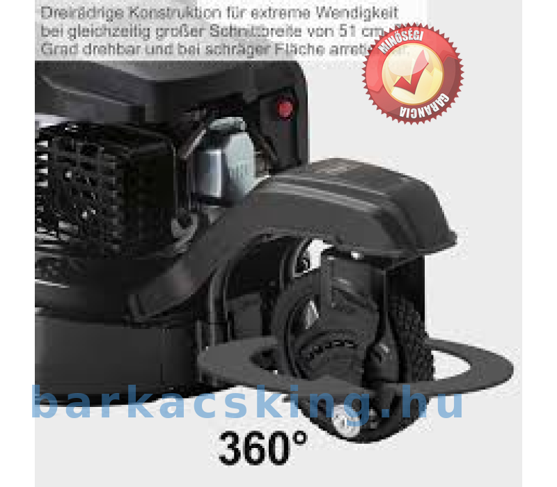 • Háromkerék-konstrukció az extrém manőverezhetőség érdekében, nagy, 51 cm-es vágásszélességgel