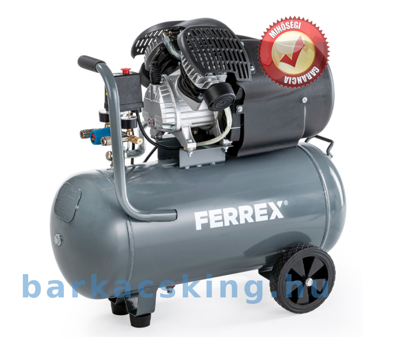 A nagy teljesítményű Ferrex DZK412 kompresszor két hengerrel pillanatok alatt feltölti 50 literes tartályát 412 l/perc szívókapacitásának. A két, saját nyomásmérővel ellátott nyomáscsatlakozó lehetővé teszi a gyors szerszámcserét. Ezáltal praktikus társ mind a hobbibarkácsolók, mind a szakemberek számára a műhelyben, garázsban és építkezéseken végzett legkülönfélébb munkákhoz.
