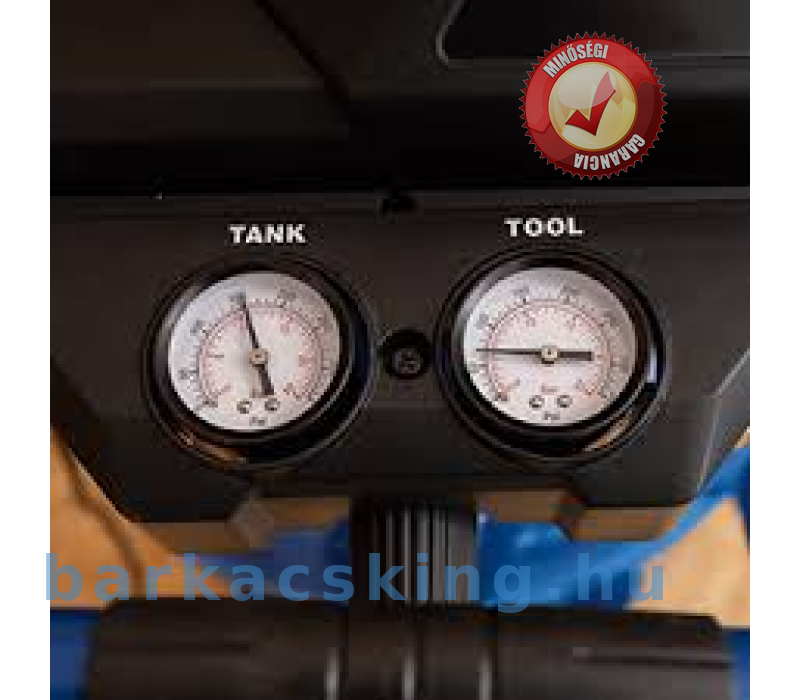 A két integrált gyorscsatlakozónak a scheppach HC8 HC5V-nél különösen gyorsak a szerszámcserék. A kompresszor két nyomásmérővel van felszerelve. Míg az első mérőműszer a kazán aktuális nyomását mutatja, a második az előre beállított üzemi nyomást.