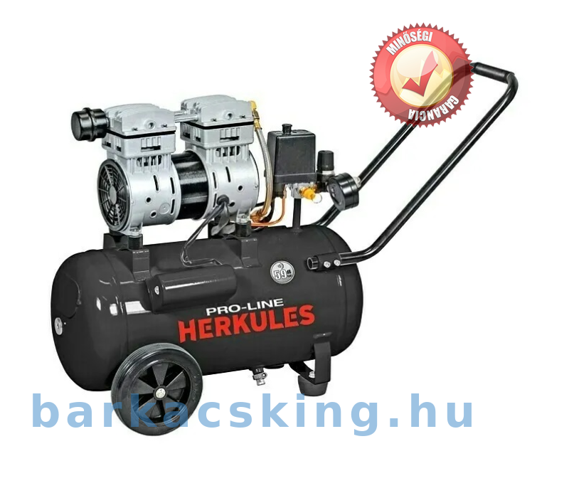 HERKULES PRO-LINE SILTEK 24 literes tartálykapacitással rendelkezik, melyből a levegő max. 8 bar nyomáson fújható ki. A nyomásszabályozóval állítható. Működése rendkívül csendes, mindössze 59 dB!